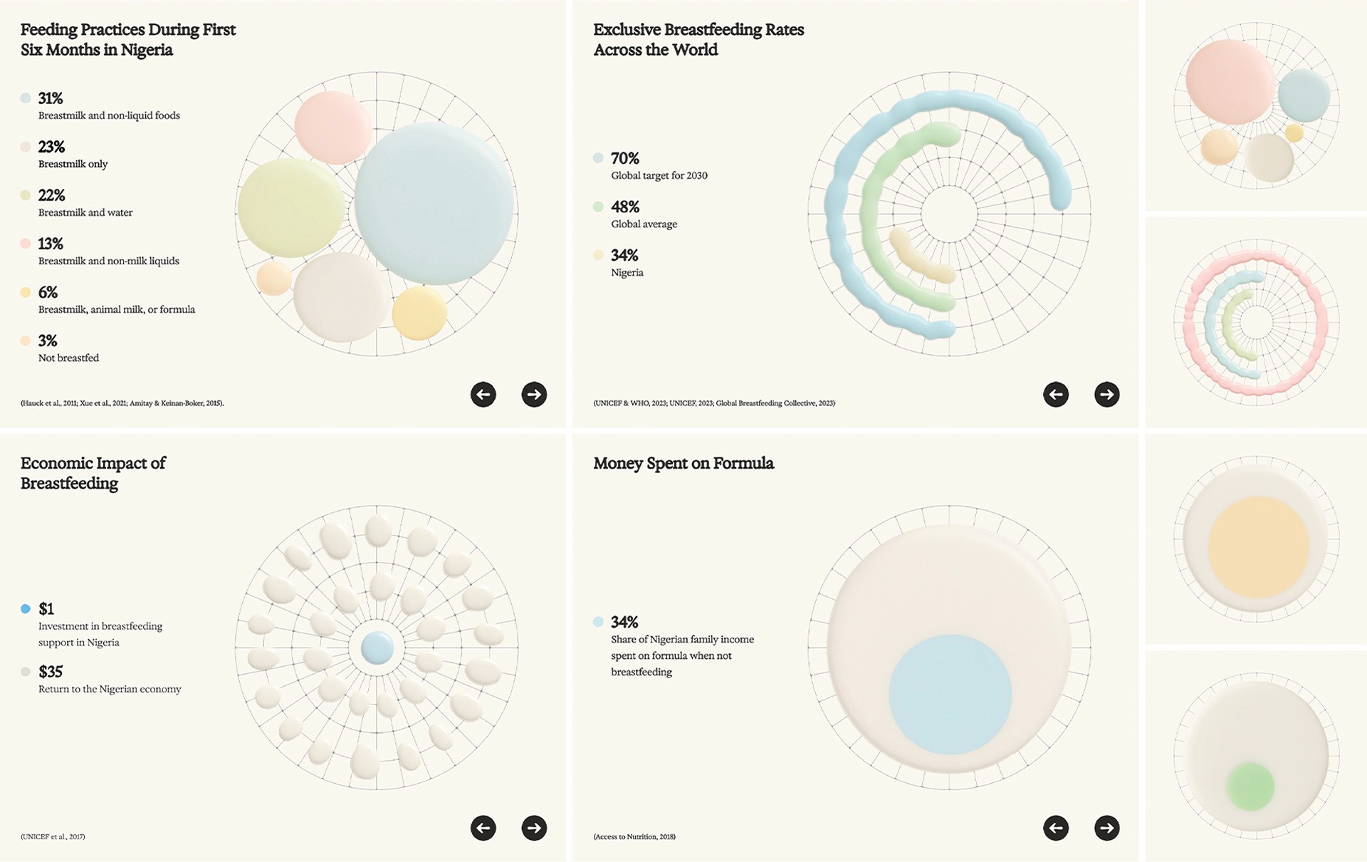 The website acts as the campaign hub. It features custom fluid animations and data visualizations based on the anatomy of the breast and milk glands, with colors reflecting the actual color palette found in breast milk. The website also includes an editorial as well as resources for mothers struggling to breastfeed.