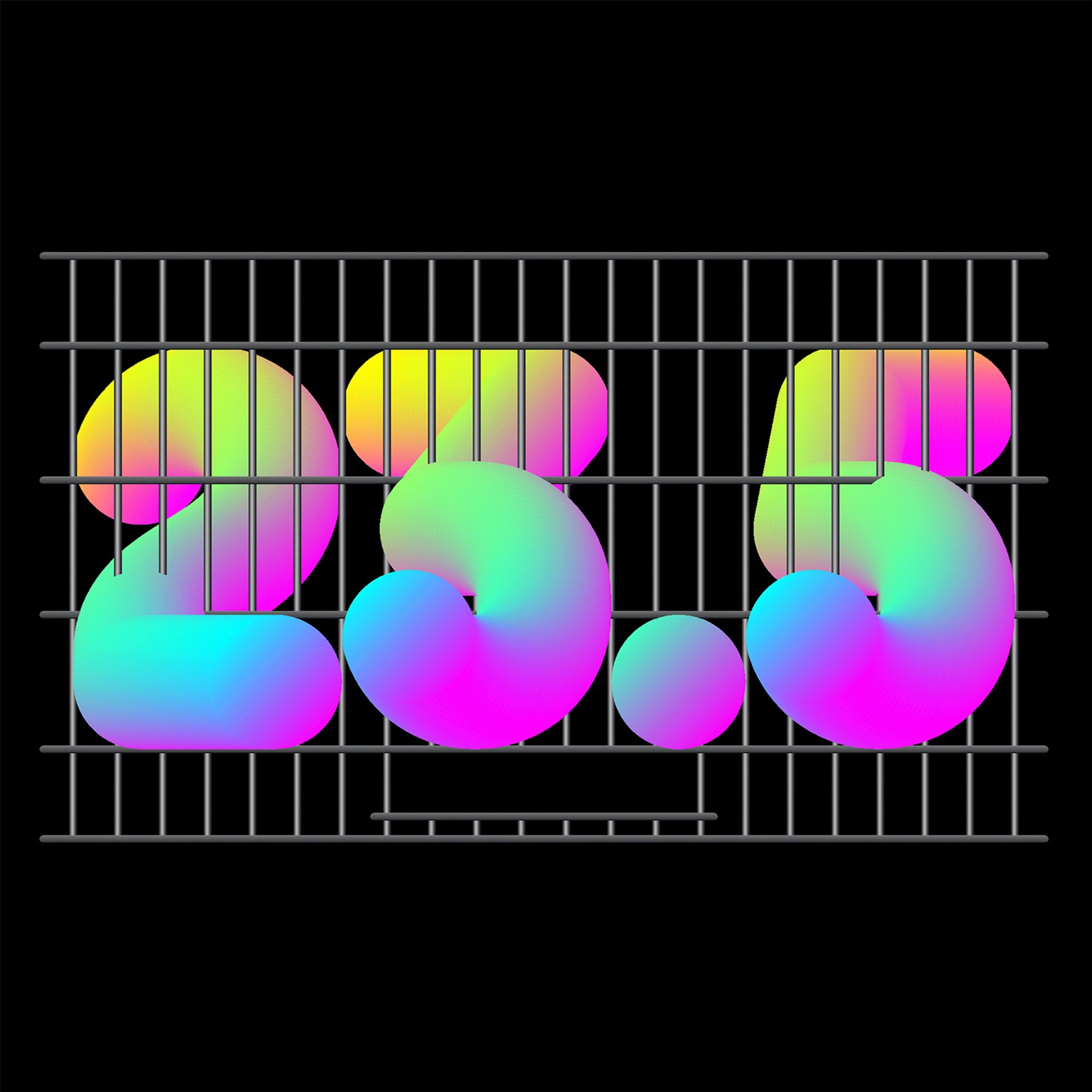 The design system is based on prison bars from which generative typography literally breaks free, symbolizing the project’s theme of liberation.